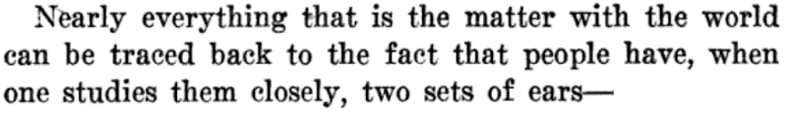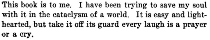 From Hermione and Her Little Group of Serious Thinkers by Don Marquis, 1916. The text reads, "It is not enough to be merely unworldly. One must be Other-Worldly as well, if you get what I mean. Every time before I take up anything new I ask myself, 'Is it Other-Worldly? Or is it not Other-Worldly?' That is the Touchstone. One can apply it to everything, simply everything!"
