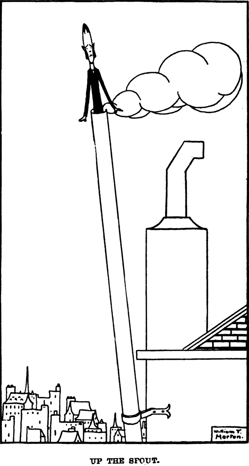 "He did his time on his head, smiling peacefully." From Pick Me Up, 1894.