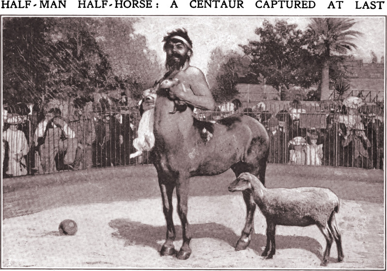 "Half-man half-horse: a centaur captured at last," from The Sketch, 1908.