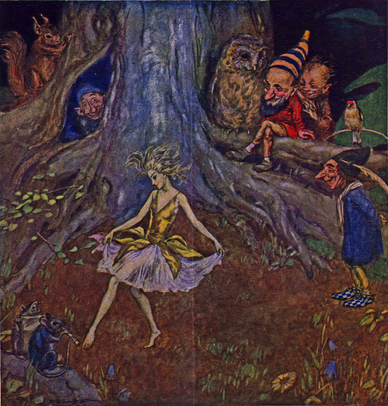 Pinkie and the Fairies by Walford Graham Robertson, 1909, with additional fairy twinkles punched by Indiana University.