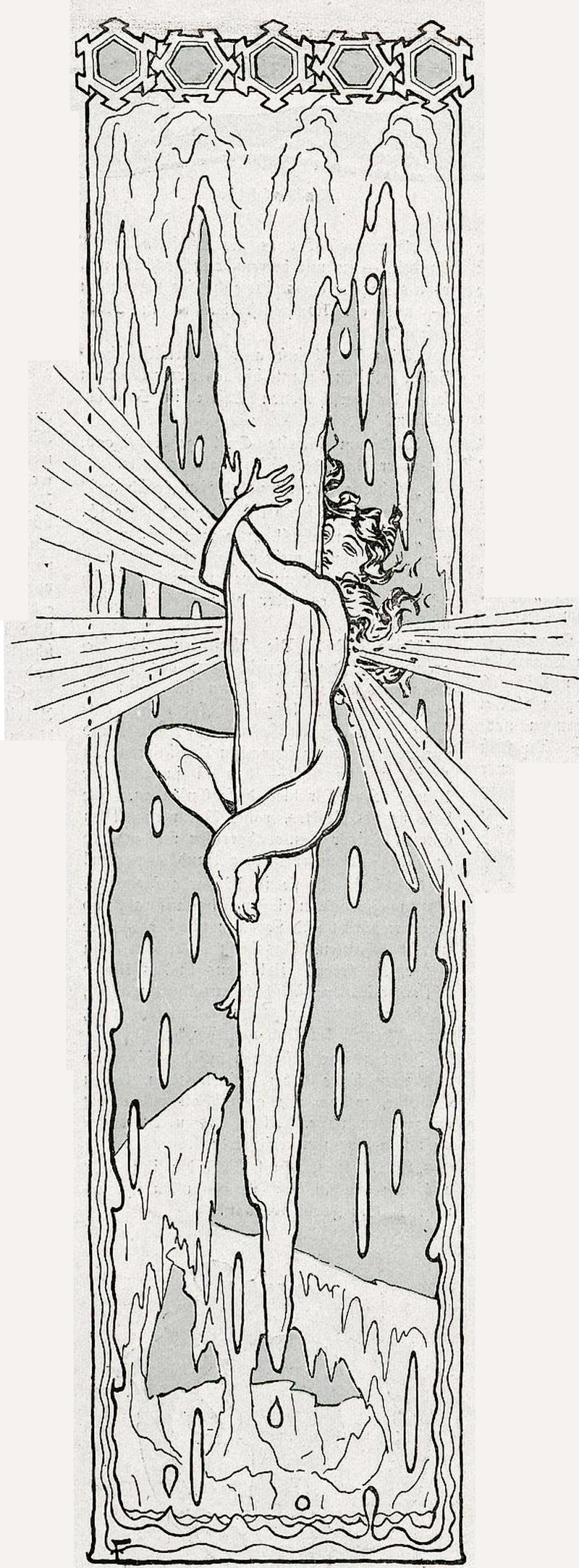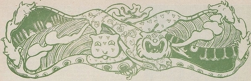 These rows of asterisks are a veil of winking stars from the birth of creation, relating details that the author fears to describe. From The Mythological Zoo by Oliver Herford, 1912.