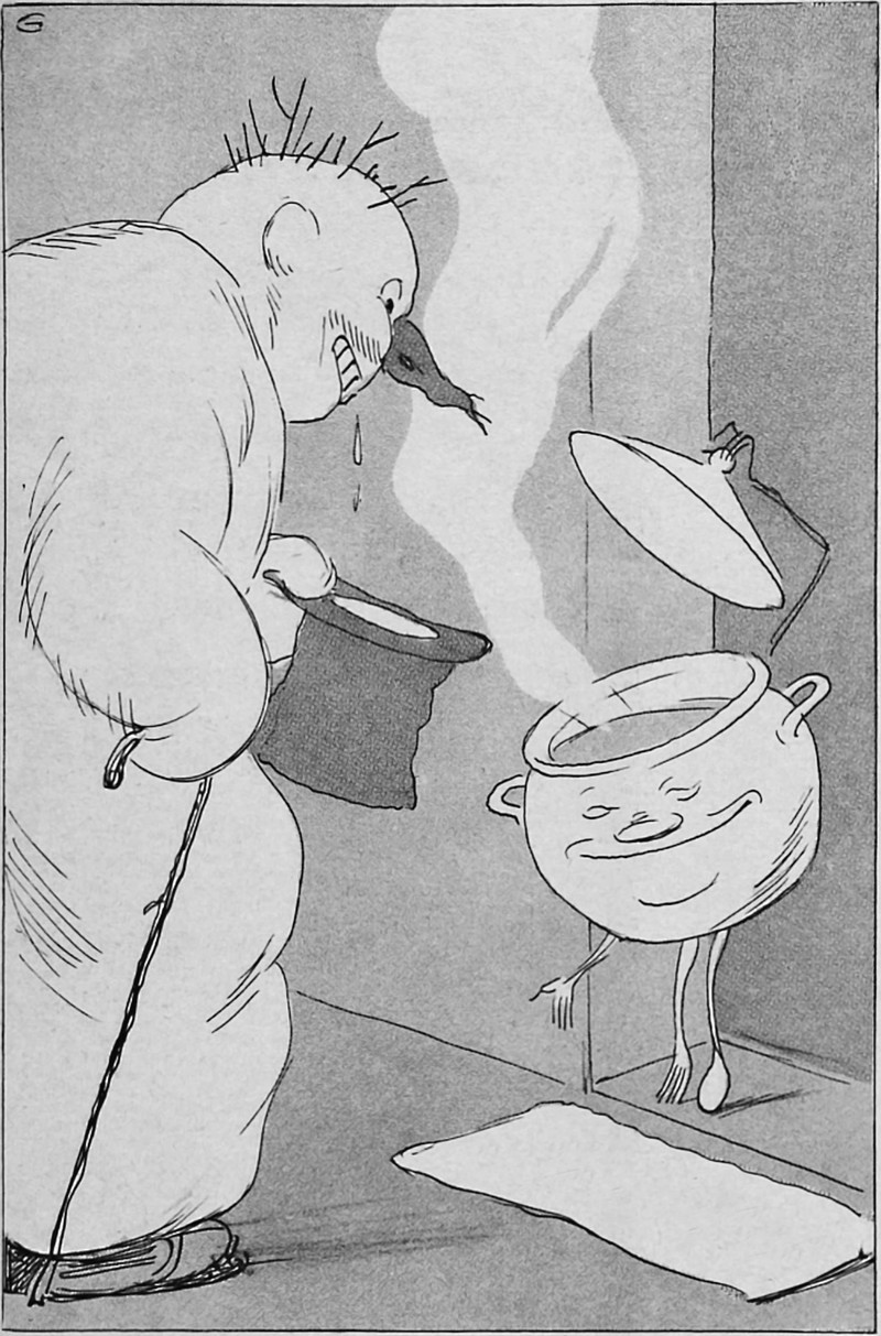 Hat sizes for pumpkins run large. From Fliegende Blätter, 1934.