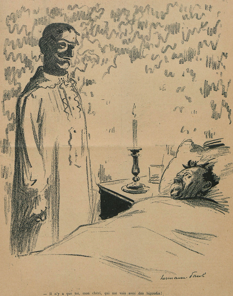 We, too, look at our sparkly shoes through smoked glass. From Le Rire, 1912.