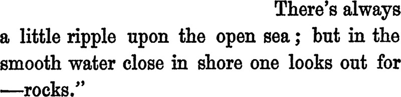 "There's always a little ripple upon the open sea; but in the smooth water close in shore one looks out for—rocks." From A Prince of Darkness by Florence Warden, 1885.