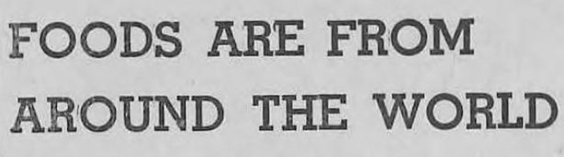 Finally, a headline we can believe. "Foods are from around the world." From Stoutiana, 1916.