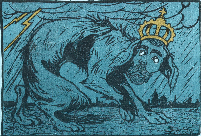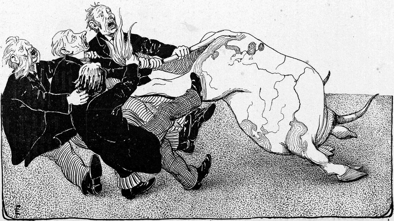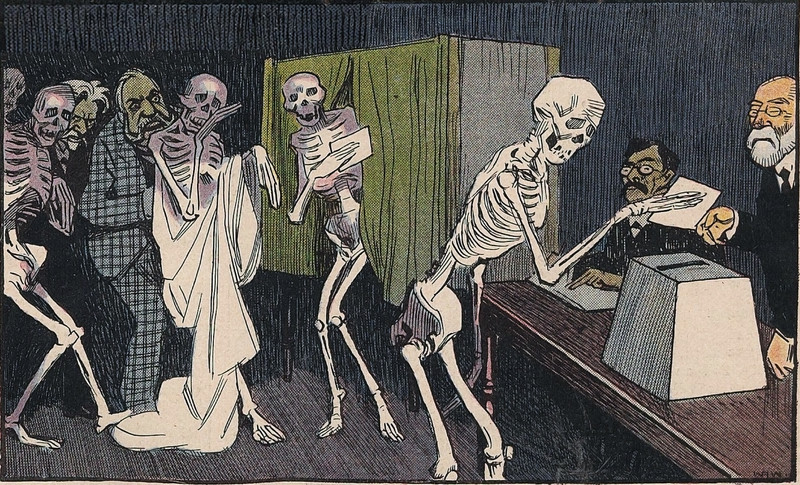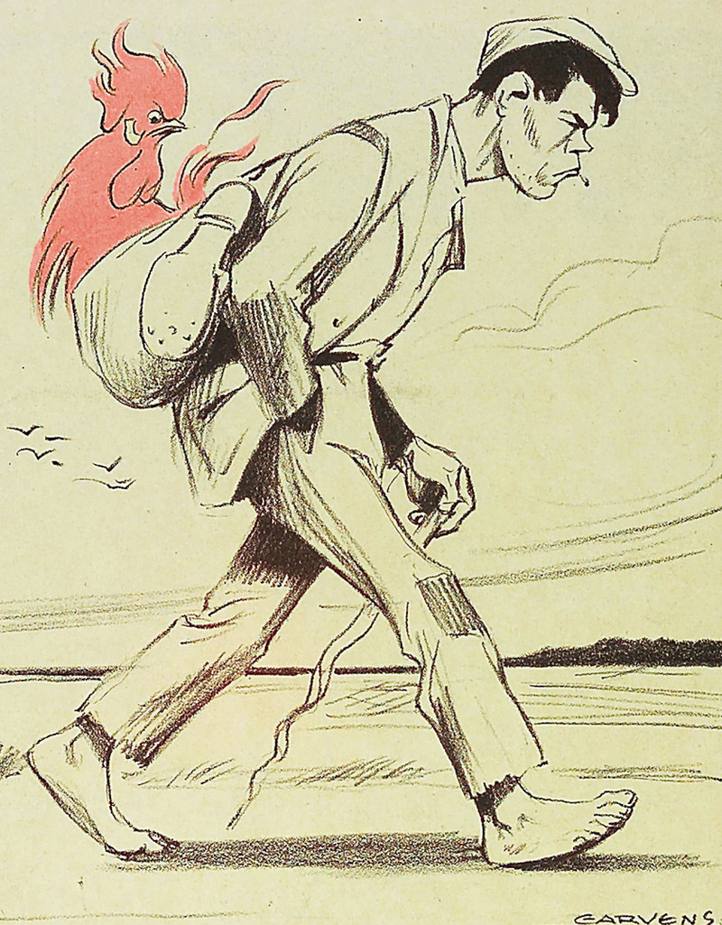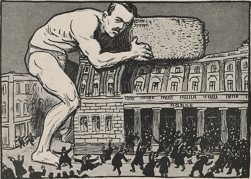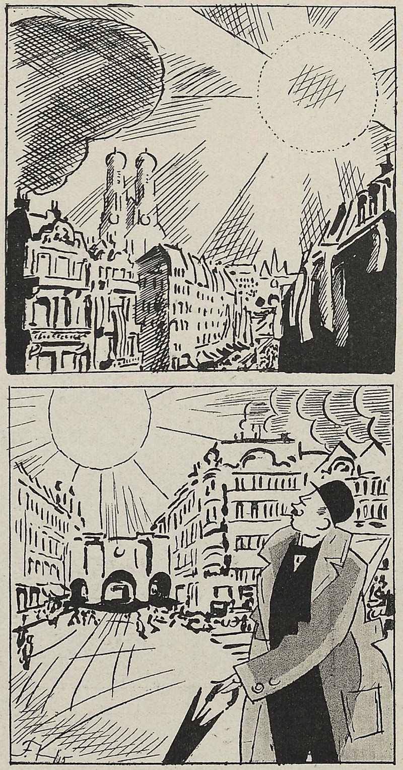 From Nebelspalter, 1914. The figure at the bottom, tipping his hat at a trail of injured bodies, recalls the evil detective Hercule Poirot. As we said back in 2012: