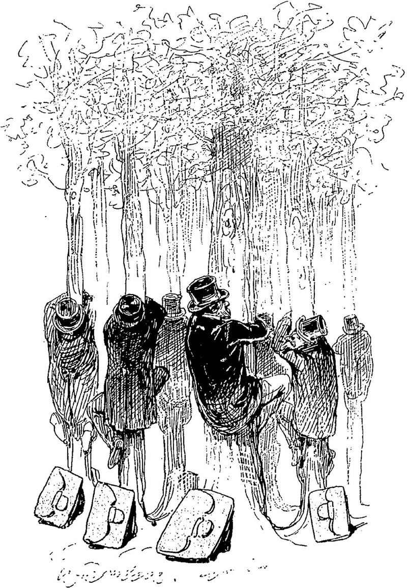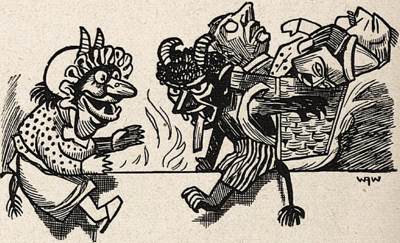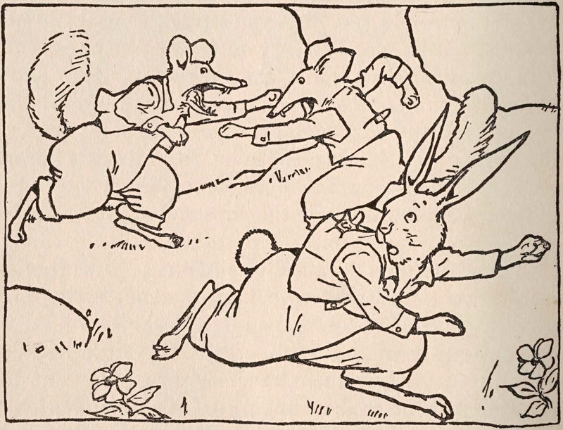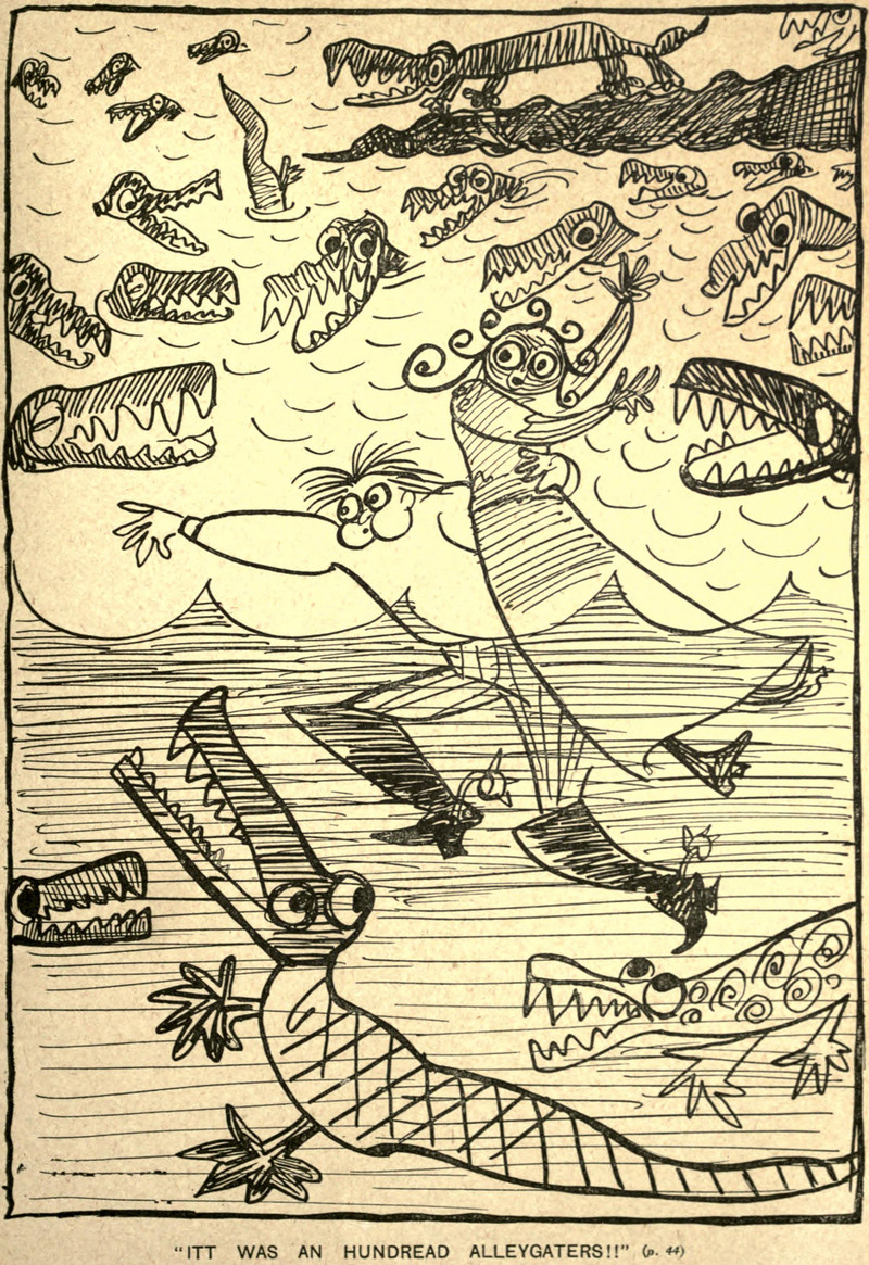 Seems like everybody's looking whenever we make a miss-dip. From Hollow Tree Nights and Days by Albert Bigelow Paine and illustrated by J. M. Condé, 1916.