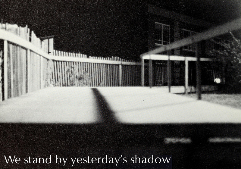 A wish for you: if you're ever trapped within a mirrored tombstone, may there be a reflective sheet of glass nearby so that you can at least see things unreversed. From Centenary's 1974 yearbook.
