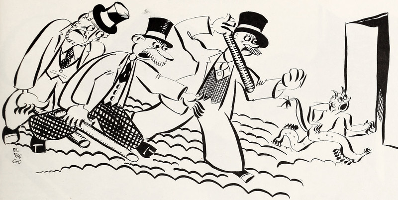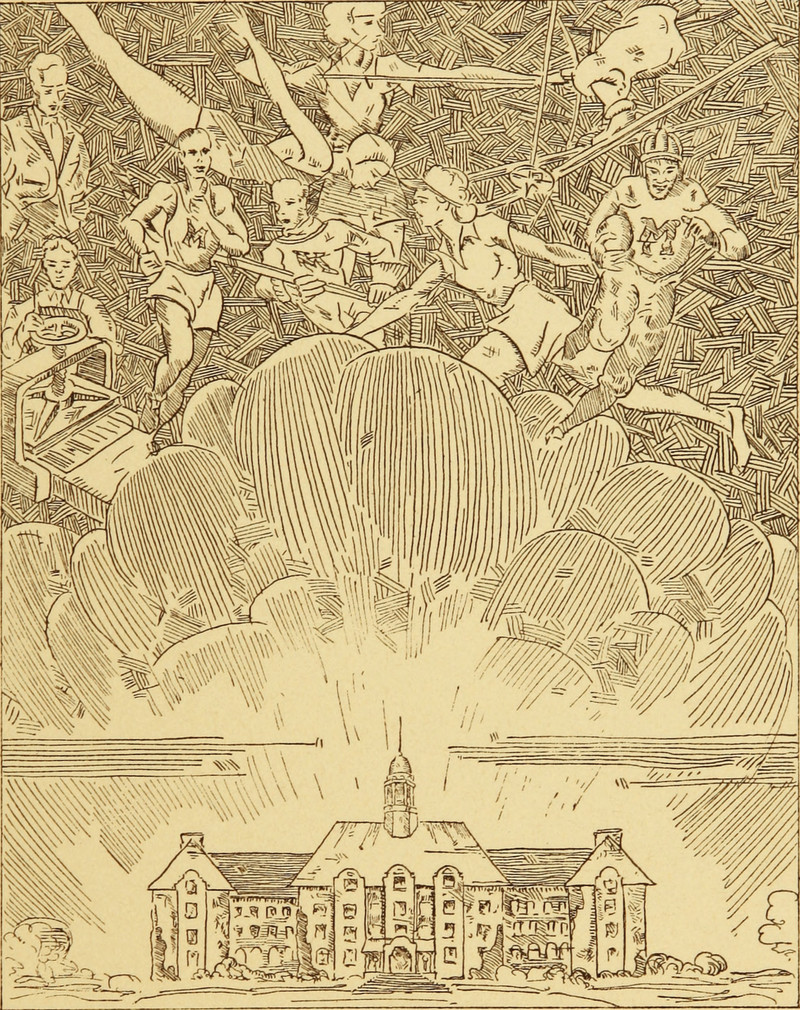 This tiny jester with a shoulder ladder, looking very happy to have reached an ear, is from Lebanon Valley's 1921 yearbook. (Our restoration, as per usual.)