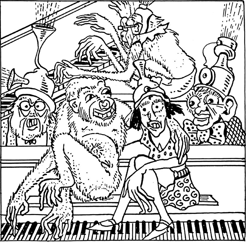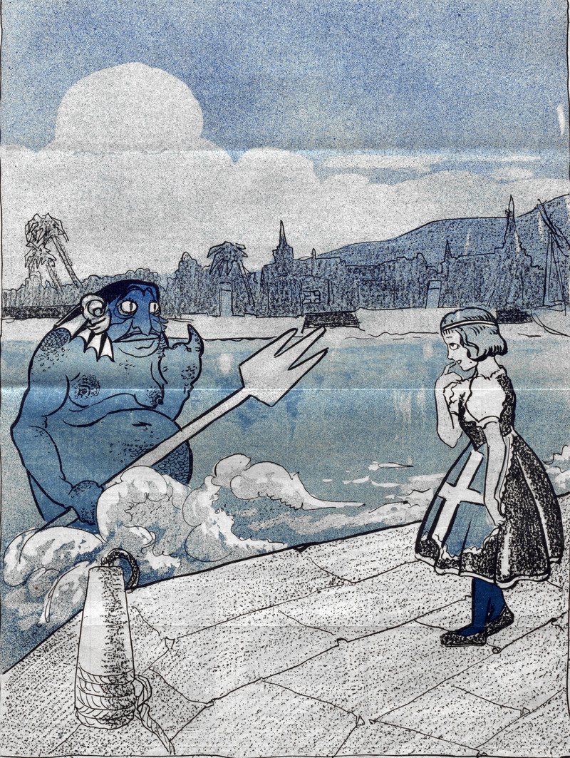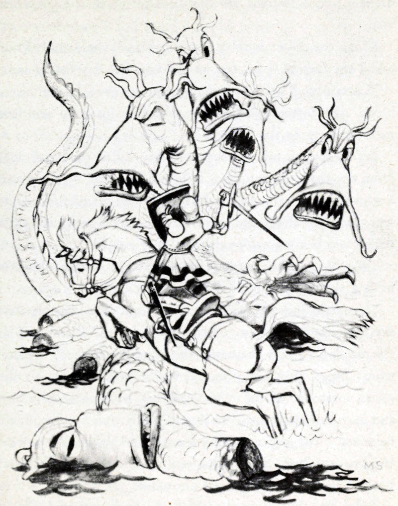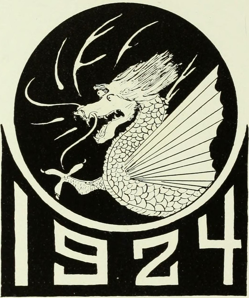 A heart full of waffles, sausages, fish, and galoshes, surrounded by aquatic life forms, and topped with roasted poultry. From Colorado College's 1925 yearbook.