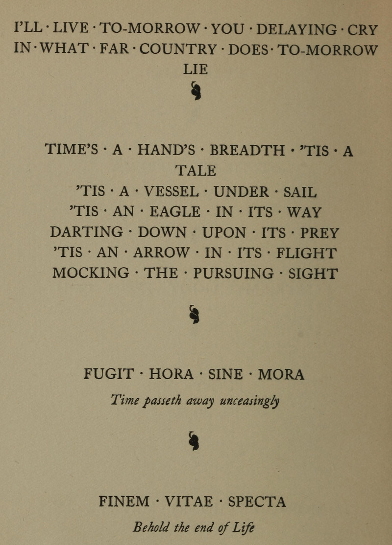 "Leaves have their time to fall, and flowers to wither at the north wind's breath, and stars to set; but all, thou has all seasons for thine own, O Death."
