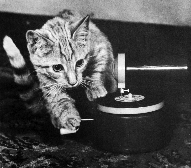 You've seen the Nipper dog who famously heard his master's voice, but here's who wound the phonograph. From The Life, History, and Magic of the Cat by Fernand Méry.