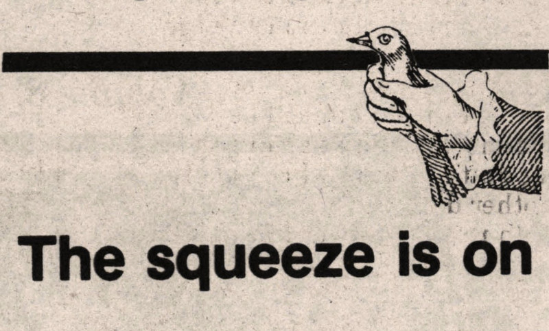 That's the only type of umbrella to use when it's snowing, as it won't get burdened by the weight of accumulated flakes. However, those might not be snowflakes here. From The Gateway, 1981.