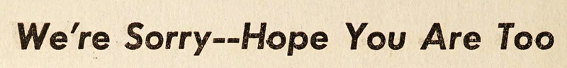 "We're sorry--hope you are too." From The Sanguinist, 1947.