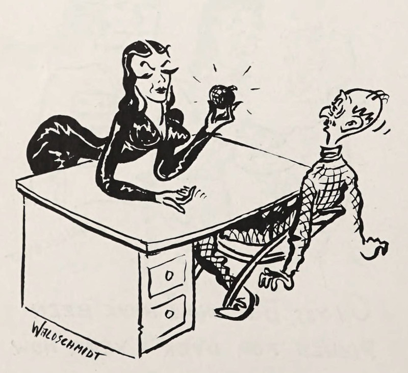 "Another scene! I was beginning to believe she enjoyed them!" From The Australian Women's Weekly, 1946.
