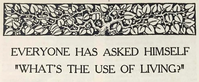 "Everyone has asked himself 'what's the use of living?'" From Reality Magazine, 1938.