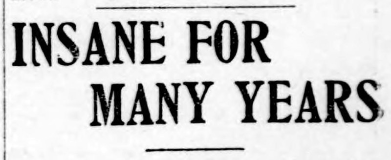 "Insane for many years." From The Duluth Evening Herald, 1904.