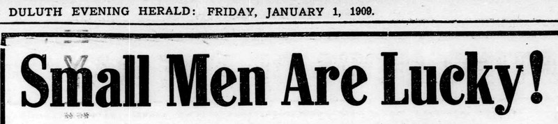 "Small men are lucky!" From The Duluth Evening Herald, 1909.