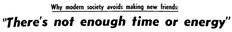 Back then as now: "Why modern society avoids making new friends: There's not enough time or energy." From The Australian Women's Weekly, 1967.