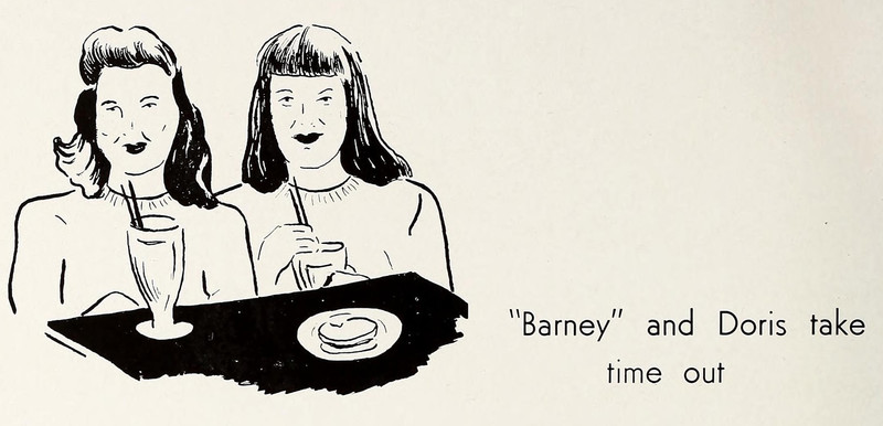 "'Barney' and Doris take time out." From MacMurray College's 1945 yearbook.