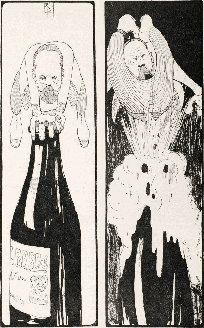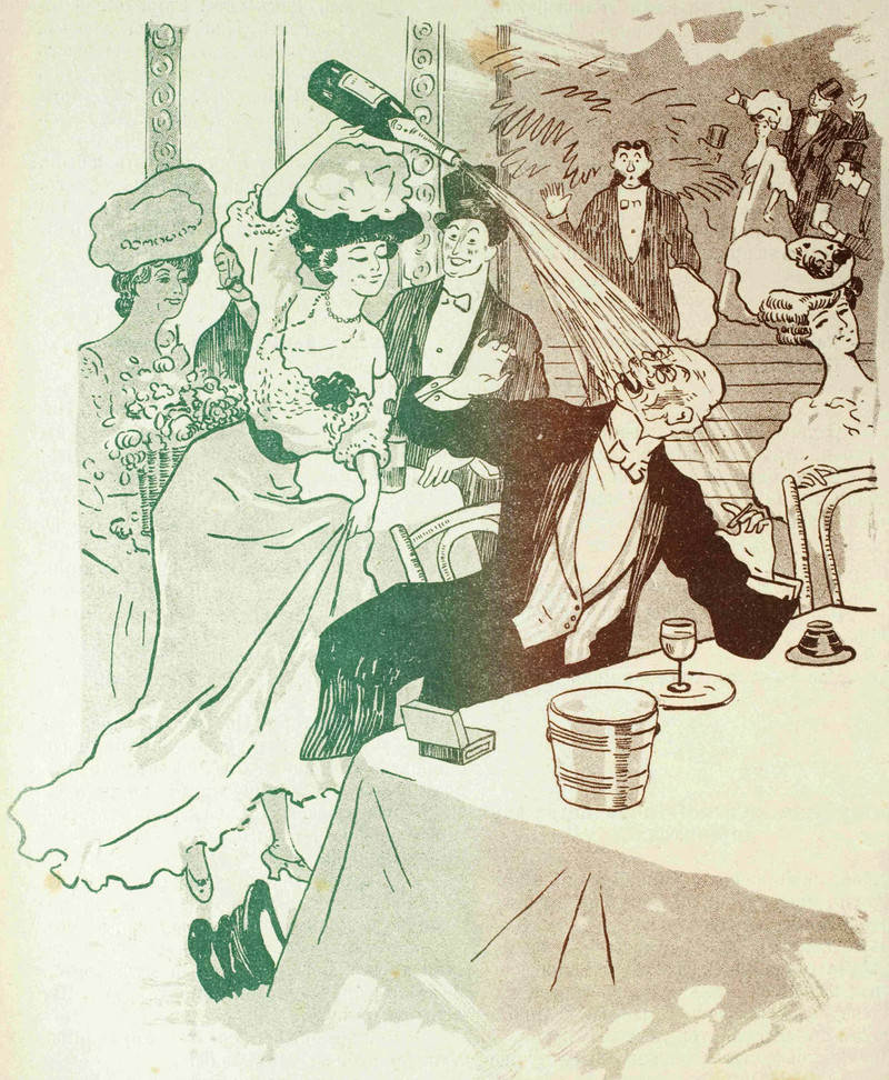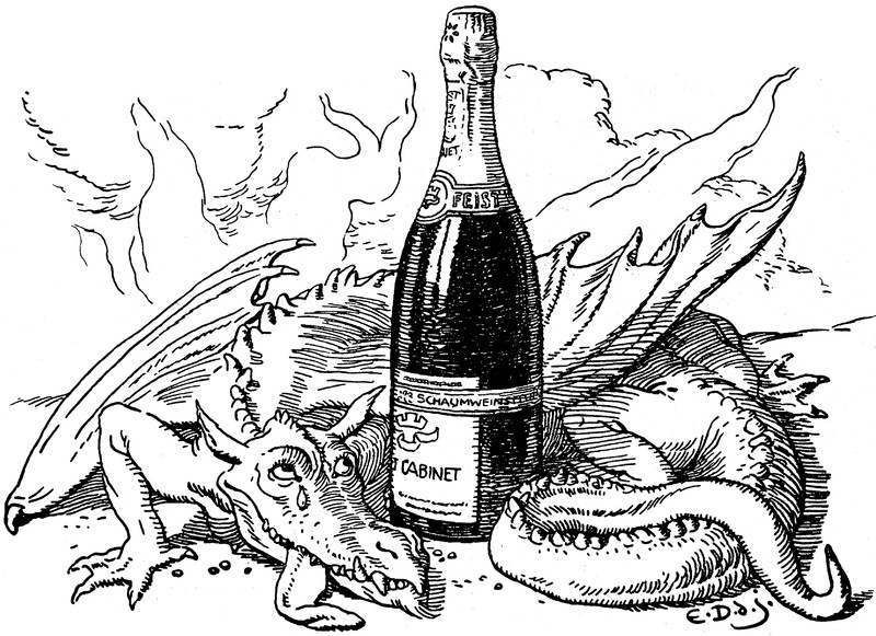 How well do you know your giant bottles? Is this a Jeroboam, a Rehoboam, a Methuselah, a Salmanazar, a Balthazar, a Nebuchadnezzar, a Melchior, a Solomon, a Goliath, or a Melchizedek? From Lustige Blätter, 1917.