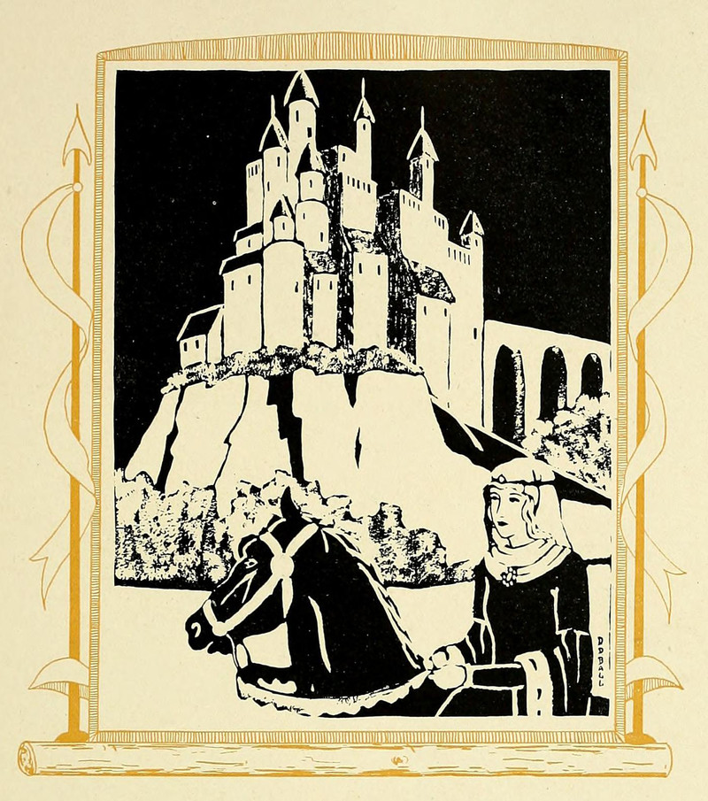 #vintage illustration #castle #knight #vintage yearbook #yearbook #endpapers #illustration
