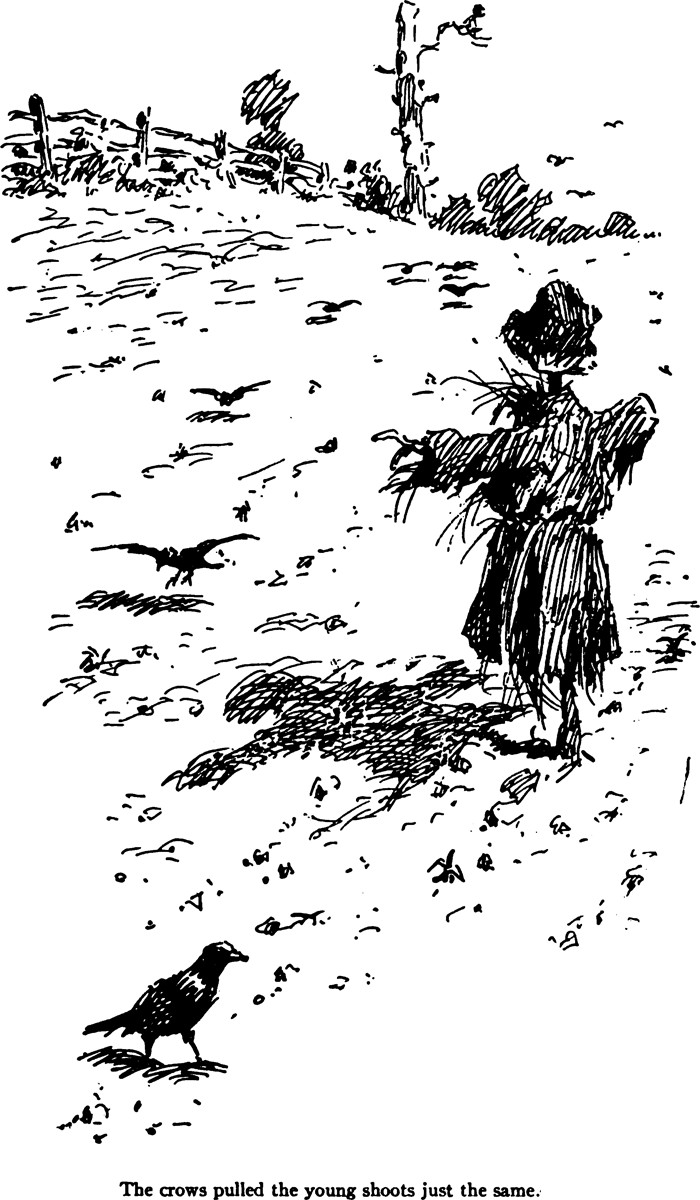 An illustration from an 1897 issue of Cosmopolitan magazine. The caption reads: "A multitude of crows hopped and fought over the skeletons of the dead."