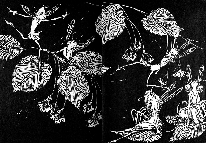 The setting mapped on the endpapers is even divided into acres, as in "the Hundred Acre Wood," in this rather blatant "tribute" to Winnie the Pooh, two decades later. We decoded the young reader's squiggle. It says, "Christopher Robin did it first." From Poo and the Baby Bunny Rabbit by Edwin Megargee, 1947.