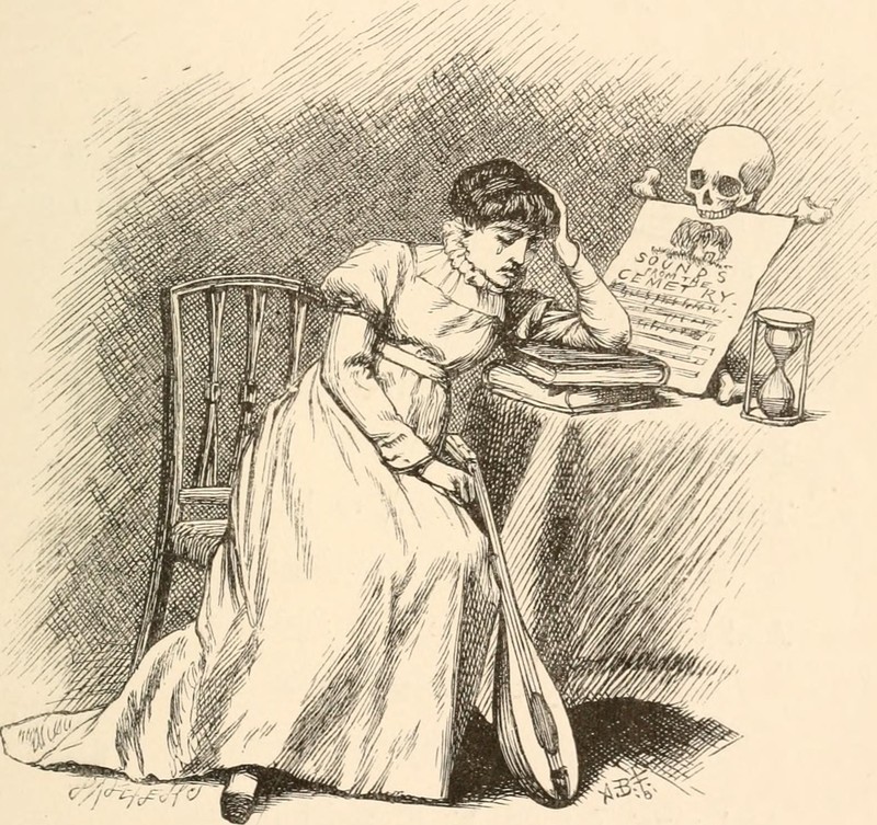 Here's sheet music for "Sounds from the Cemetery," a precursor to novelty Halloween albums, from Rhyme and Reason by Lewis Carroll (1884).