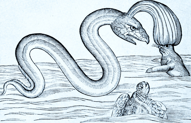"The 'Reversus like an eel,' as represented by Aldrovandi in 'De Piscibus,' 1638." Reproduced in the Annual Report of the Board of Regents of the Smithsonian Institution, 1915.