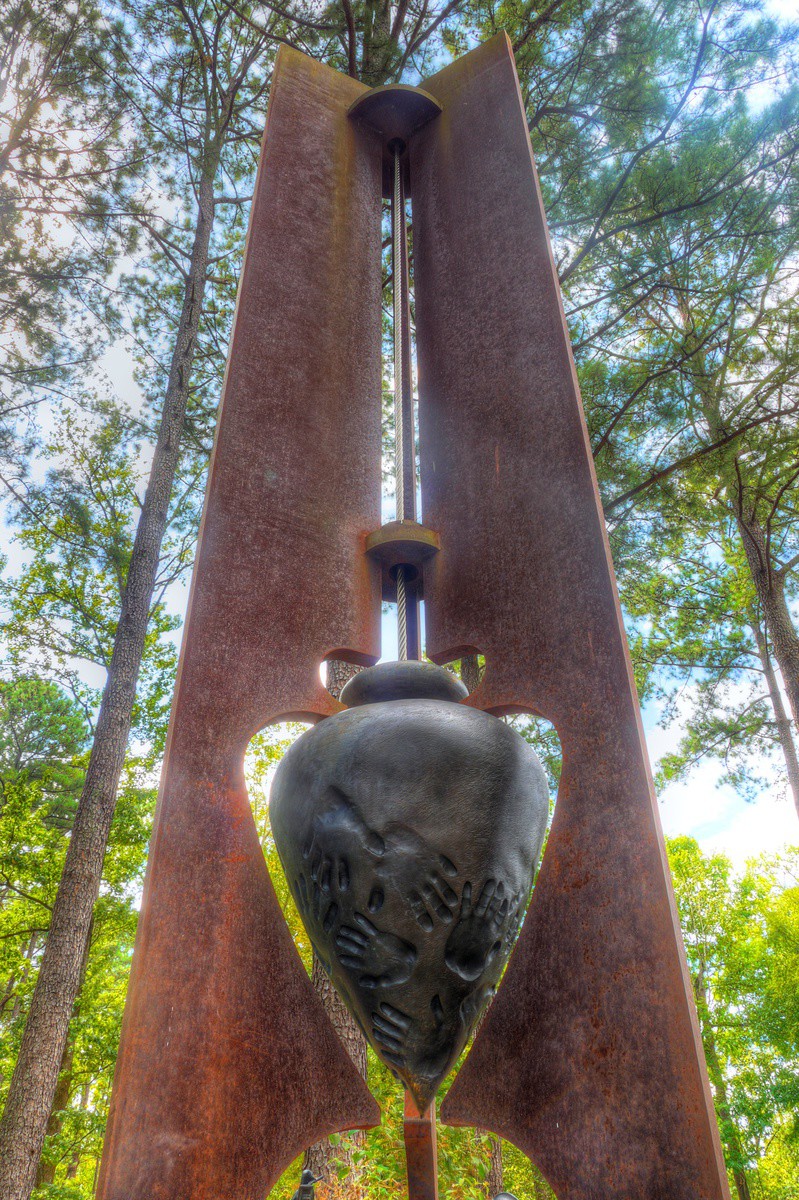 We noted an air of timlessness at Aldridge Gardens in Birmingham, Alabama. As chronologicians, we investigated the area for the cause, and (as per usual) it was virtually staring us in the face — a giant frozen pendulum. Say what you will about modern art, this piece sure does the trick in terms of manifesting and maintining a temporal anomaly.