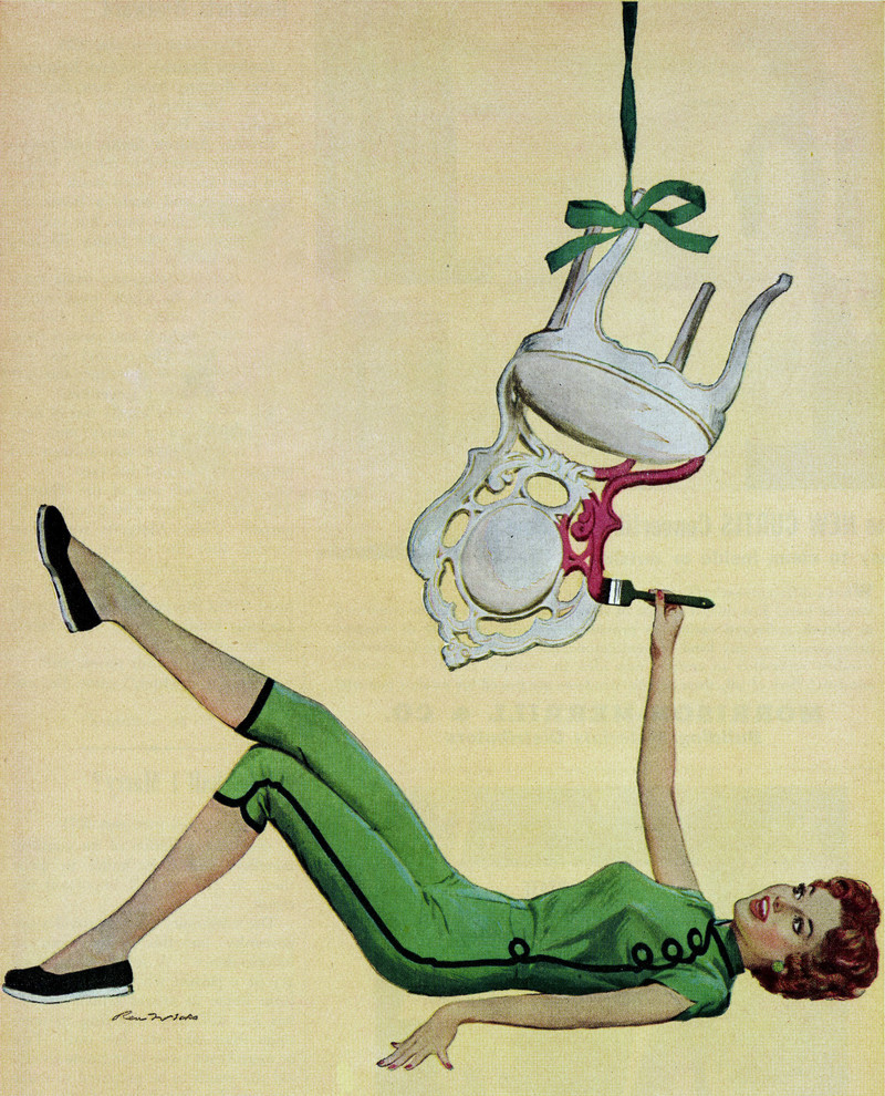 #vintage illustration #vintage ad #fashion #vintage fashion #upside down #painting #woman #vintage woman #1950s #ad