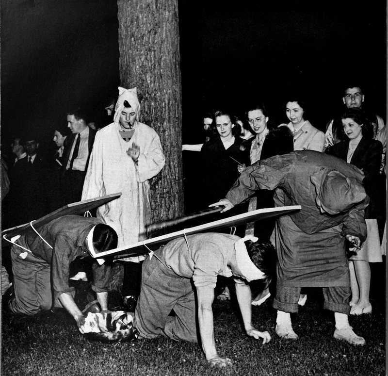 If your eye immediately went to the guy wearing his eyeglasses upside down, you most likely have a somewhat kooky nature and are fun to be around. From Earlham's 1959 yearbook.