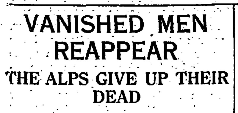 "Vanished men reappear.  The Alps give up their dead."  From The Children's Newspaper, 1921.