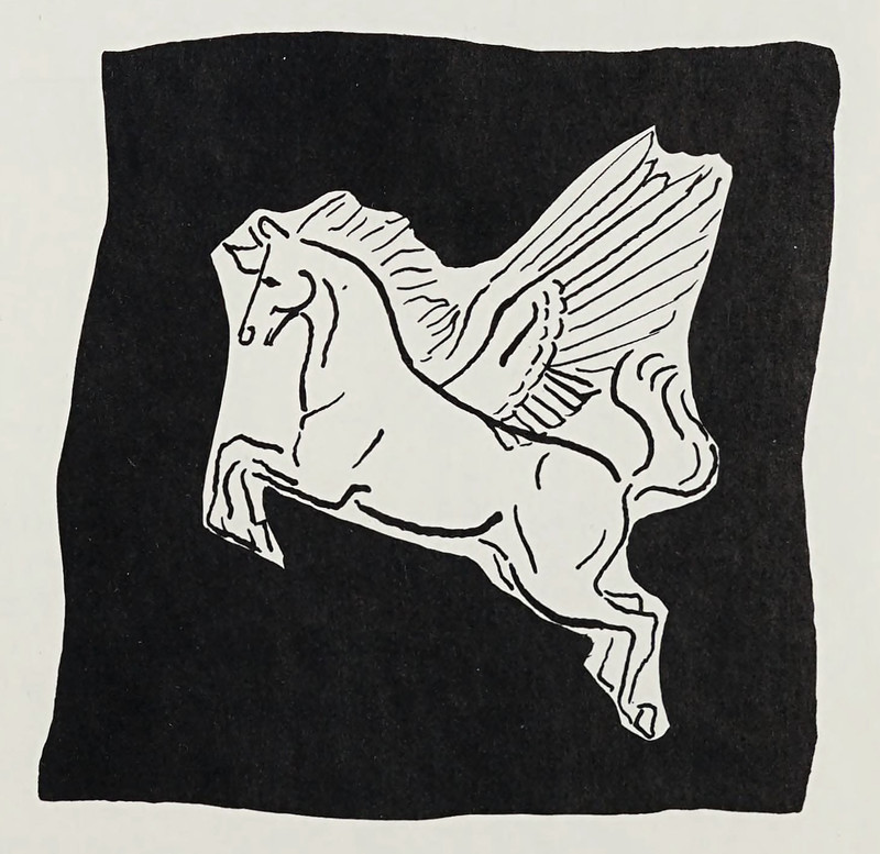 #vintage illustration #pegasus #vintage yearbook #yearbook #flying horse #winged horse #1960s #illustration