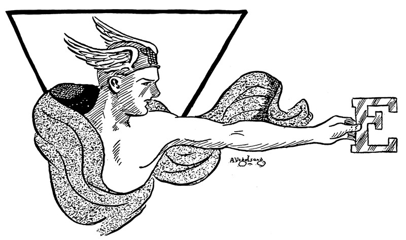#vintage illustration #ornate capital #vintage yearbook #yearbook #mercury #illustration #letter e #1910s