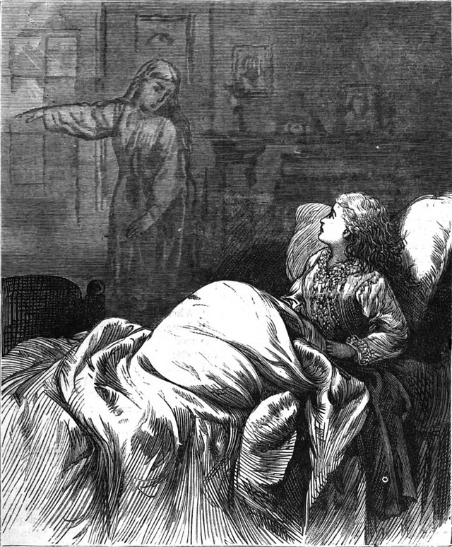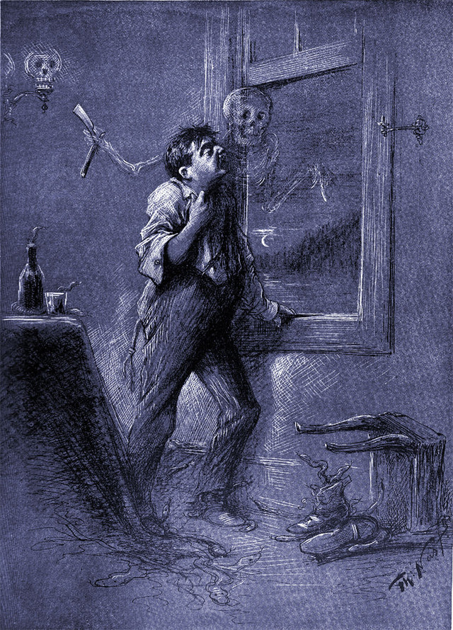 In the grand finale of Disneyland's famous Haunted Mansion, a ghost sits next to you. Here's an illustration from an 1891 issue of The Strand magazine. The caption reads: "Haunted." [This one's dedicated to our friend at Long-Forgotten, who ruminates fascinatingly on the eccentric masterpiece that is the Haunted Mansion.]