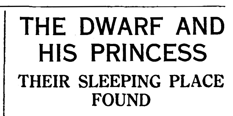 "The dwarf and his princess.  Their sleeping place found."  From The Children's Newspaper, 1927.