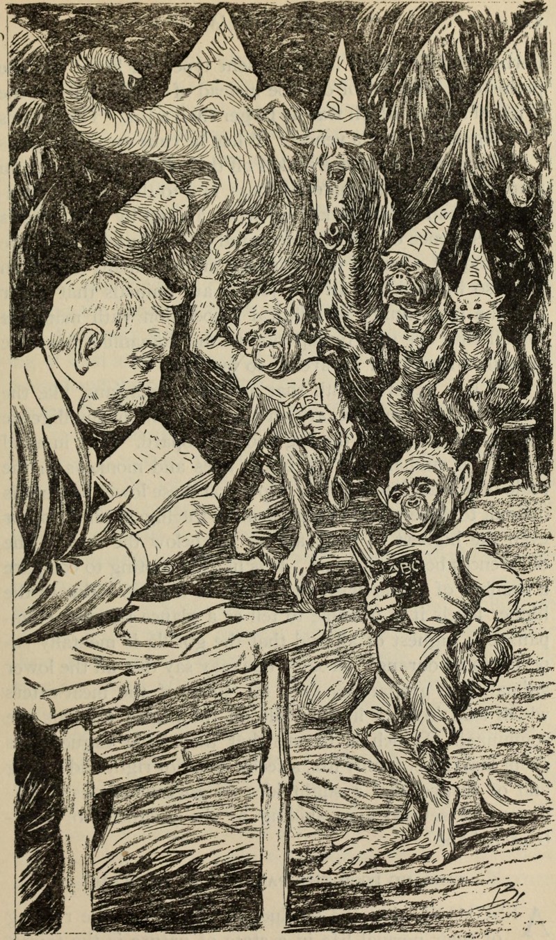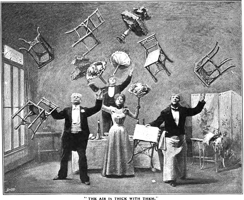 Ending a scene "with a jolt— the ubiquitous cat jump (a feline leaps out of the darkness with a screech). This is the oldest trick in the book." — John Kenneth Muir, Horror Films of The 1980s (2007) The illustration is from Appleton's magazine, 1907. The caption reads: "With a savage whining scream The Death hurtled through the air."