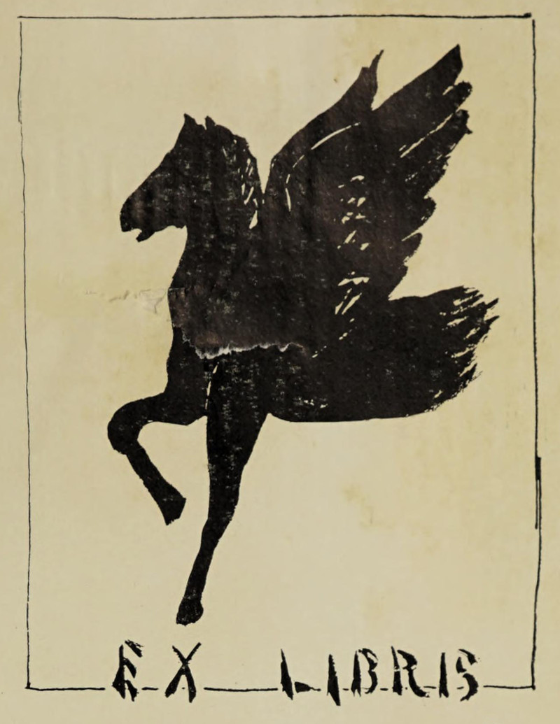 #vintage illustration #pegasus #vintage yearbook #yearbook #flying horse #winged horse #ex libris #bookplate