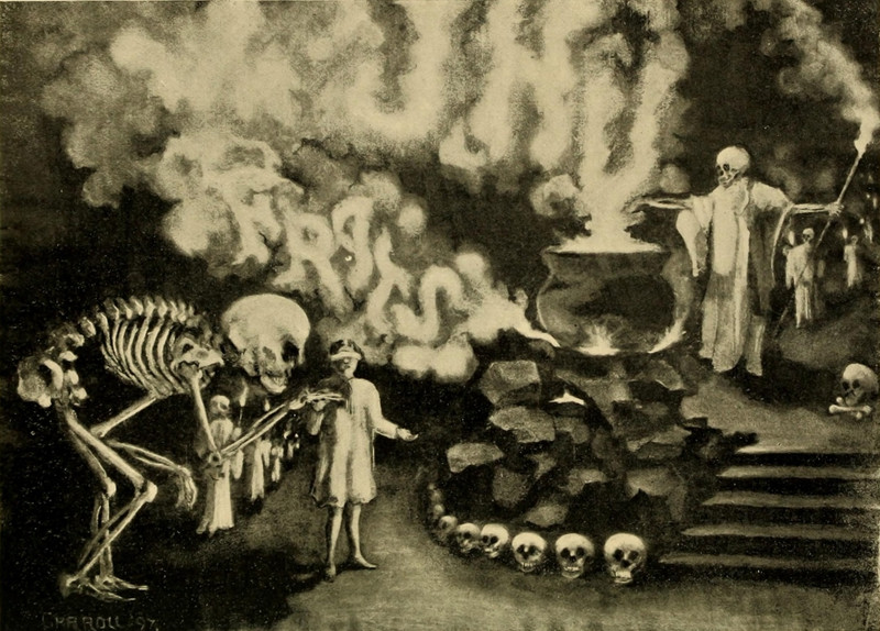 #vintage illustration #skeleton #occult #cauldron #fraternity #vintage yearbook #yearbook
