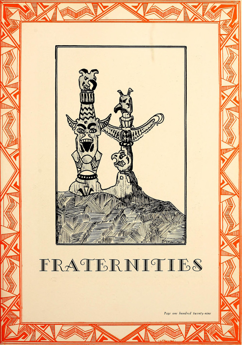 #vintage illustration #fraternity #vintage yearbook #totem pole