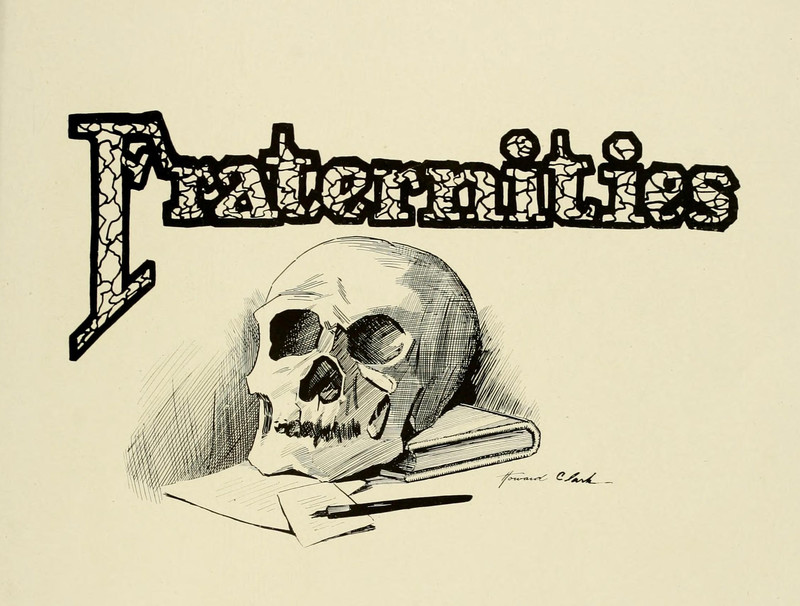 #vintage illustration #skull #fraternity #vintage yearbook #yearbook #1910s
