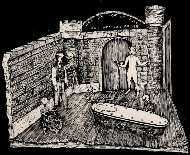 #vintage illustration #devil #skeleton #coffin #fraternity #vintage yearbook #yearbook #secret society