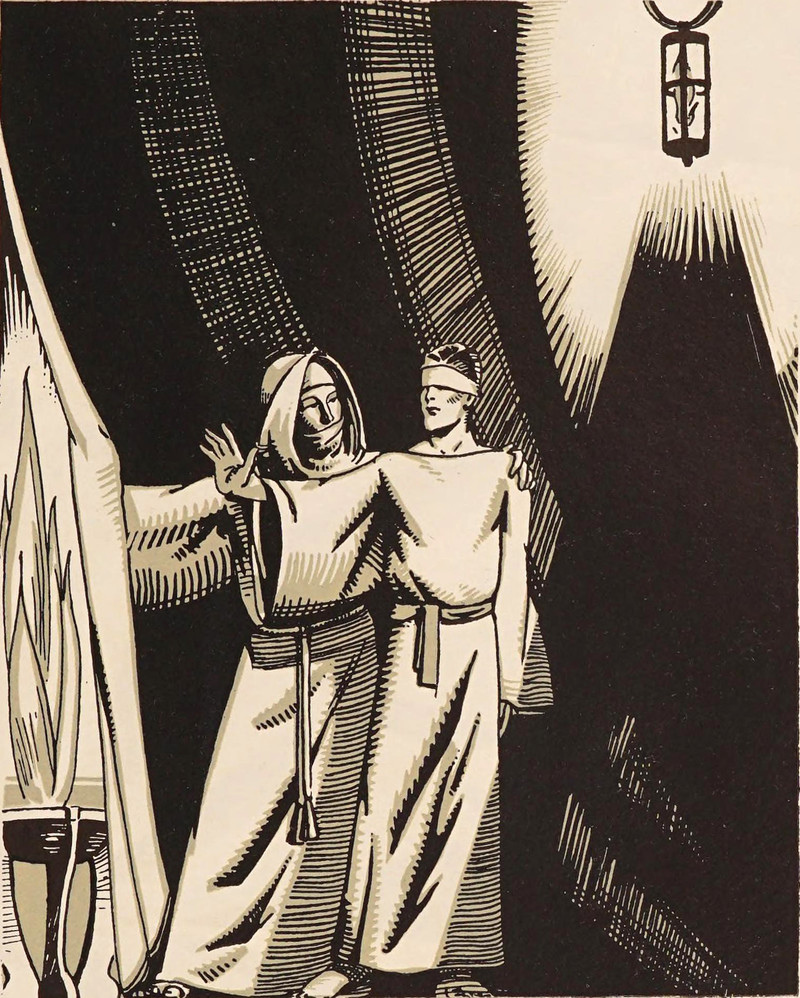#vintage illustration #fraternity #vintage yearbook #yearbook #secret society #blindfolded #hooded figure