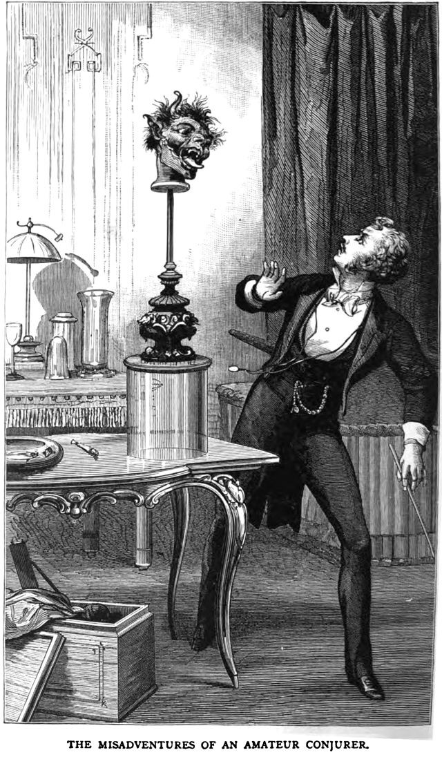 Here's the explanation of the trick candle, "invented by a man as a rather peculiar surprise for a friend. He made that friend a present of some coloured wax candles, one of which contained the affair shown. The receiver was very fond of having a few candles of the coloured kind placed about his drawing-room, in candelabra, and was intensely surprised one night when one of those which he had thankfully accepted from his friend exploded with a loud 'bang,' after having burnt down about half-way, and revealed to view a miniature ghost, with outstretched arms, which had issued from the remaining portion of the candle. To say that the man was puzzled by so extraordinary an apparition is to incompletely describe his feelings. I wonder how the reader would accept such a crisis. I know that I should have been very much astonished. Yet the effect was produced in an exceedingly simple manner, as can be understood by examining the drawings. The lower half of the candle really consisted of a thin cardboard case, containing a spring and a small 'ghost' with spring-arms, which would fly apart immediately upon being released from their bondage. A small portion of gunpowder, separated by a disc of paper from the head of the 'ghost,' completed the apparatus. The outside of the cylinder was waxed to appear as but the continuation of the candle. When the flame burnt to the powder it naturally caused it to explode, and simultaneously with the discharge the spring forced the little image upwards. This device would make an effective toy, I am inclined to think, as the cylinder could be used as often as required, by fixing a half-candle properly to the top of it and concealing the join."