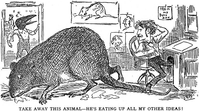 There are actually some good (though unspoken) reasons why magicians rarely attempt to pull rabbits from hats anymore. Plus, this magician looks like our wizardly mentor Larry Hass, proving to our satisfaction that he's a time traveler. From Unknown, 1943.