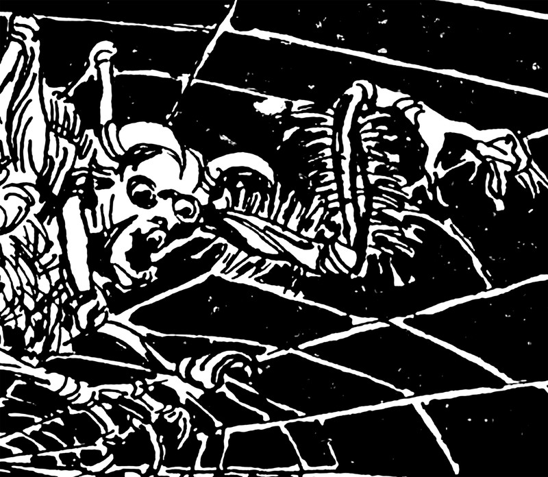 A funny inkling led us to zoom in on the head of the glowing figure. Sure enough, she has a terrifying skull face. This phantom haunts Guilford's 1990 yearbook.