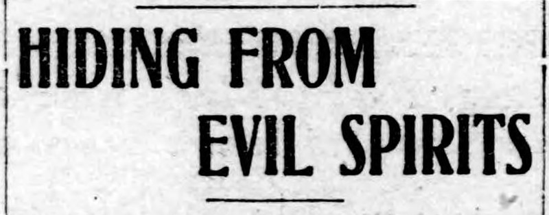 "Hiding from evil spirits."  From the Duluth Evening Herald, 1905.