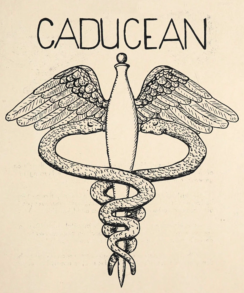 #vintage illustration #snake #vintage yearbook #yearbook #illustration #1950s #caduceus